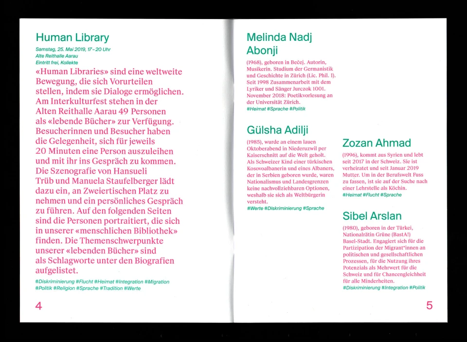 Im Mittelpunkt der zweiten Ausgabe des Interkulturfestes standen wenig überraschend die Menschen – diesmal in Form einer «Living Library». Die Bio-Biblio war hochkarätig besetzt mit Persönlichkeiten aus allen Ecken und Zentren der Gesellschaft. Wer wollte, konnte sich einzelne «Bücher» für ein 30-minütiges Gespräch ausleihen – der Andrang war so rege, dass die knapp 50 Gesprächspartner fast ununterbrochen in Ausleihe waren.