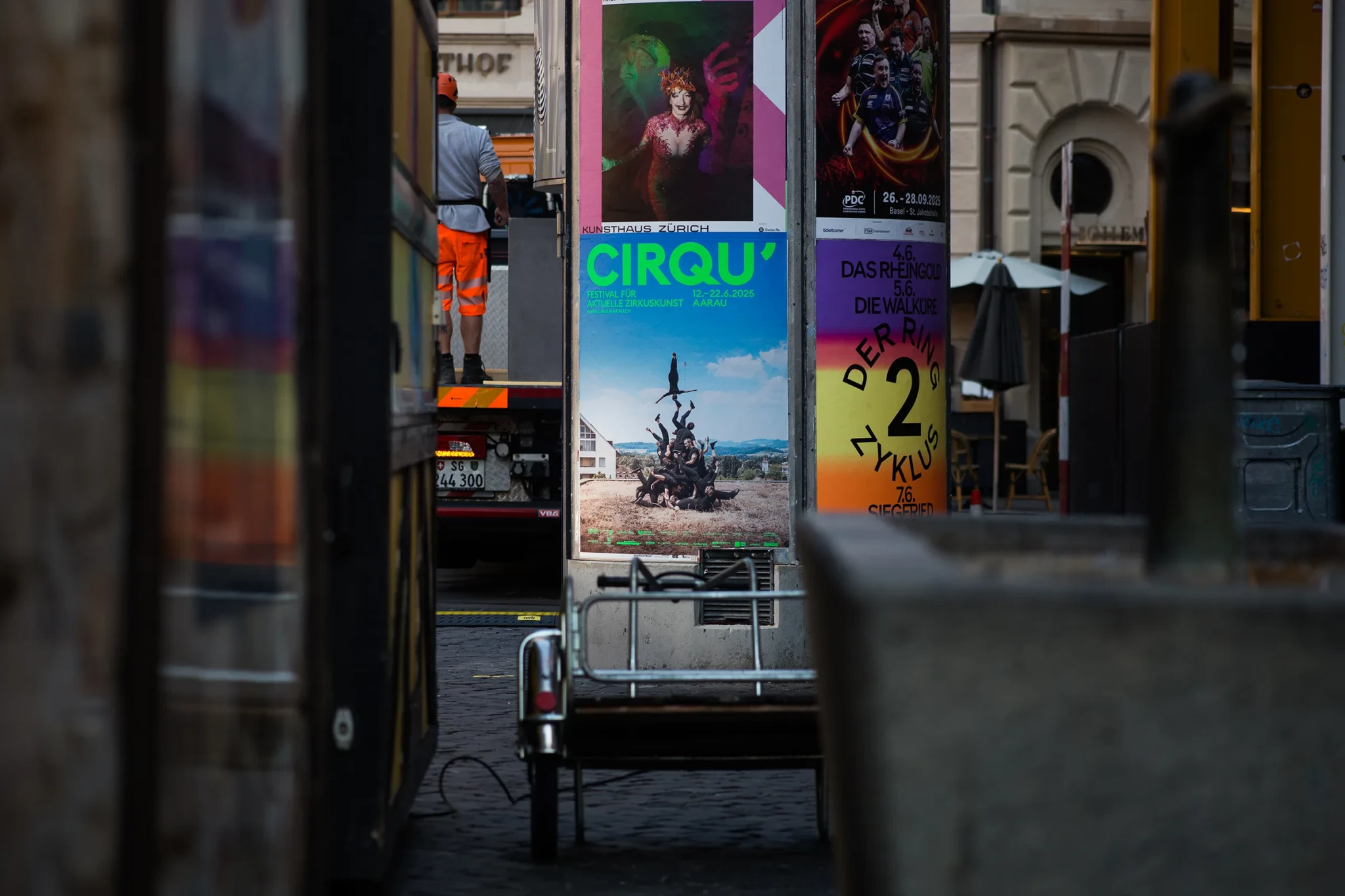 À propos Stolpersteine: Ein wiederkehrendes Thema seit dem ersten cirqu’-Festival ist die Erstkontakt-Frage, was das denn überhaupt sei, dieser zeitgenössische Zirkus. Dieser begegnen wir Bildern direkt aus dem Festivalprogramm – keine Elefanten, keine Clowns, kein Cabaret. Gepaart wird dies mit einer starken Farbe und schnörkelloser Typographie. So schafft das neue Corporate Design eine starke visuelle Identität, die den künstlerischen Inhalt des Festivals in sein Zentrum stellt und gleichzeitig Klarheit und Wiedererkennbarkeit bietet.